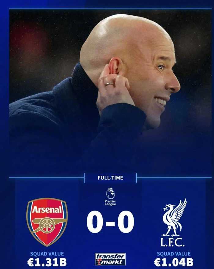 利物浦英超13年首现0射正,阿森纳主场0比0战平